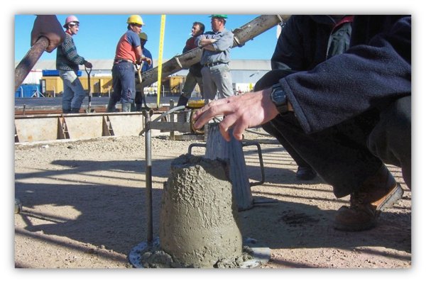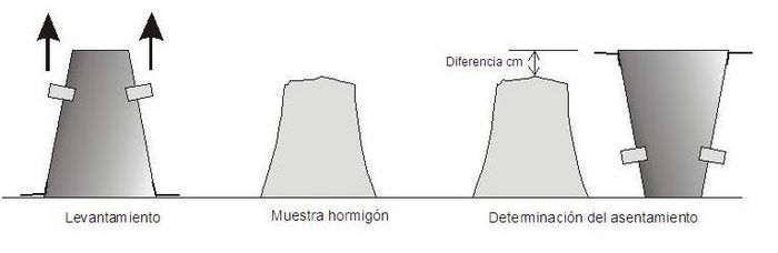 Esta medición se complementa con la observación de la forma de derrumbamiento del cono de hormigón mediante golpes laterales con la varilla pisón.