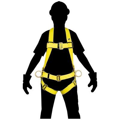 El arnés está compuesto de correas, cintas tejidas de nylon, poliéster o de otro tipo que se aseguran alrededor de cuerpo de una persona, de tal manera que en caso de sufrir una caída libre, las fuerzas de la carga de impacto que se generan al frenar una caída, se distribuyan a través de las piernas, caderas, el pecho y los hombros dirigiendo las presiones hacia arriba y hacia afuera. Esta condición contribuye a reducir la posibilidad de que el usuario sufra lesiones al ser detenida su caída.