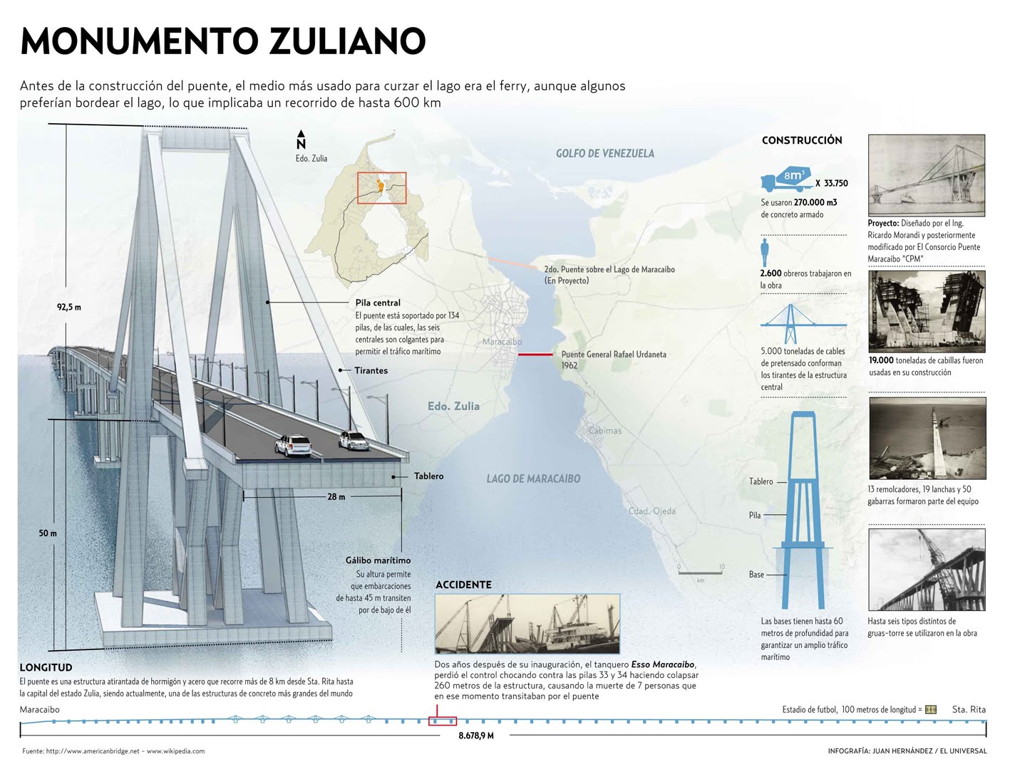 Hace 50 años fue construido sobre el lago de Maracaibo el puente General Rafael Urdaneta. El proyecto original contemplaba una estructura que tendría por debajo líneas férreas, por ambos lados terrazas, y carriles para bicicletas. Sin embargo, por motivo gubernamentales se quitó parte del proyecto original.