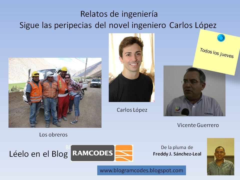 Desde hace unas semanas atrás empecé un nuevo proyecto de difusión de conceptos y prácticas de la ingeniería civil. Se trata de una novela temática de ingeniería civil con publicaciones semanales a través de mi blog. La novela narra las peripecias de el novel ingeniero civil, Carlos López, que trabaja como laboratorista de campo de suelos, concreto y asfalto en la construcción de una refinería petrolera en el noroeste venezolano. Es una historia de retos y superación en la que estoy seguro que muchos de Uds., amables lectores de este tan importante blog de ingeniería civil, se verán reflejados.