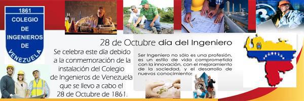 El Día del Ingeniero en Venezuela se celebra el 28 de octubre, este día, se debió a que fue el 28 de Octubre de 1.861, que se instala el Colegio de Ingenieros de Venezuela, en este acto estaban presentes 22 ingenieros de los 61 que inicialmente habrían de integrarlo, ya que eran muy pocos los hombres consagrados a esta profesión.