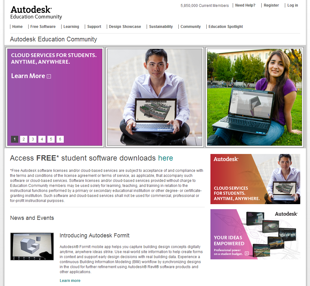 Autodesk Comunidad Estudiantil da la posibilidad de descargar desde su pagina web de manera gratuita programas, asi como Autocad, AutoCAD Structural Detailing, Autodesk Revit Structure, Autodesk Robot Structural Analisys Professional y muchos mas.