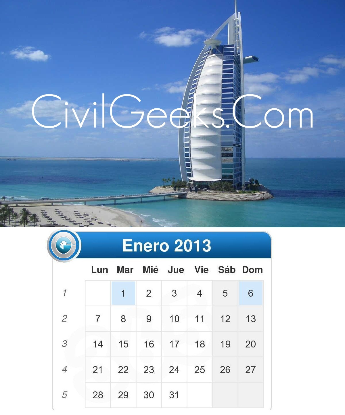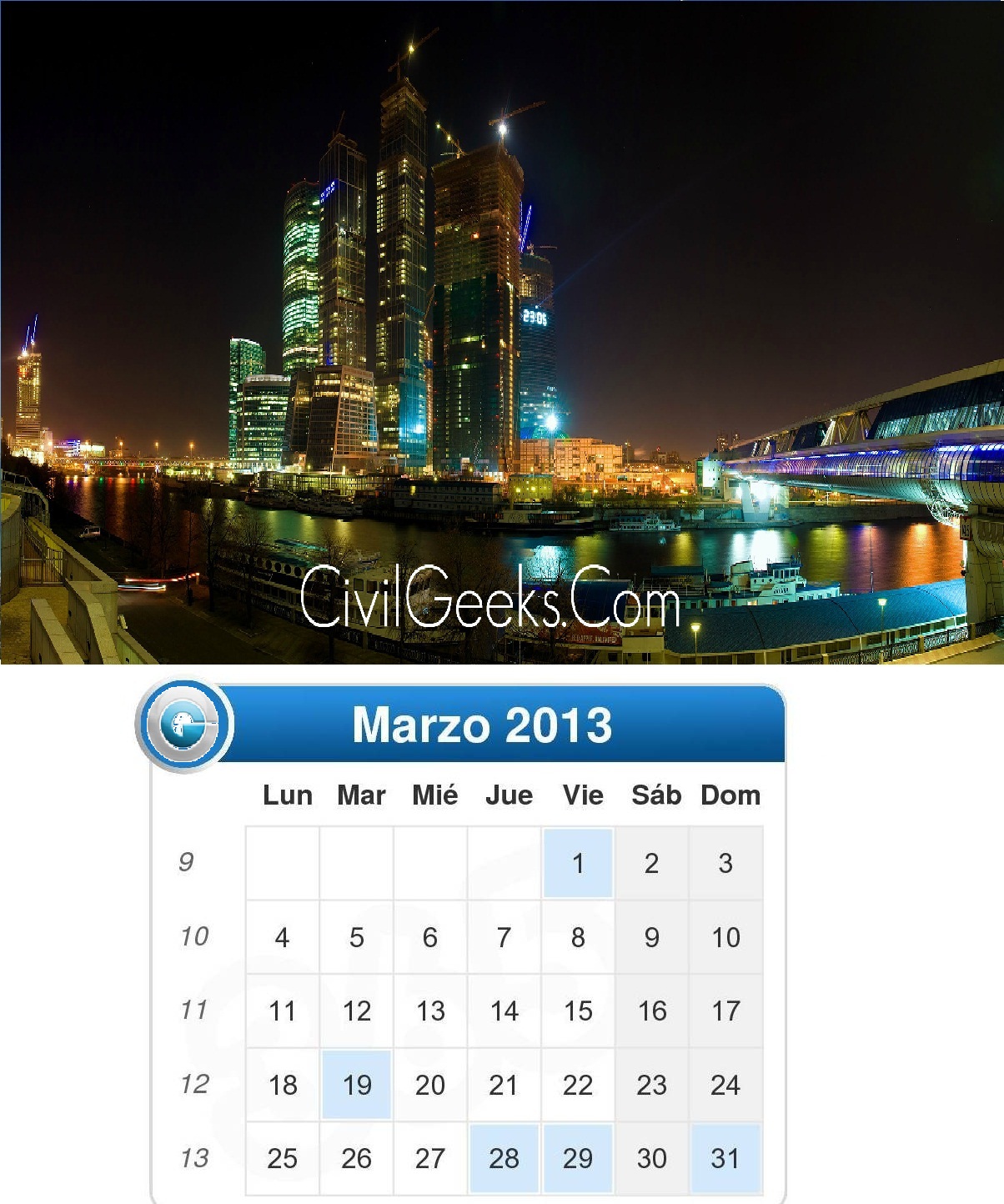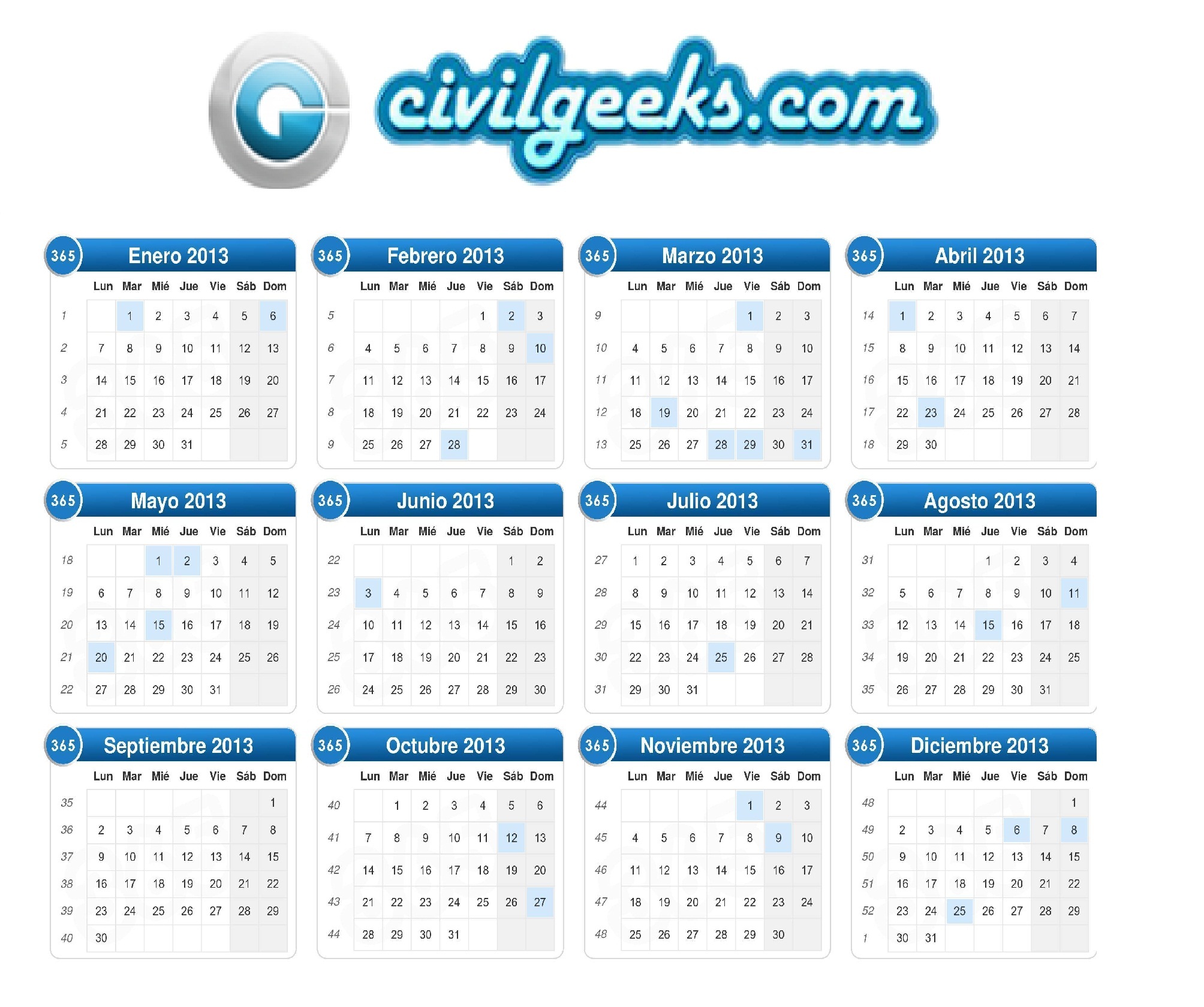 CALENDARIO OFICIAL 2013 DE LA PAGINA WEB CivilGeeks.Com