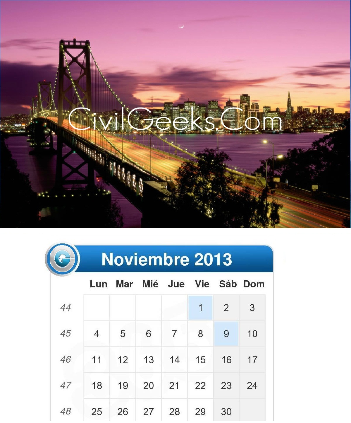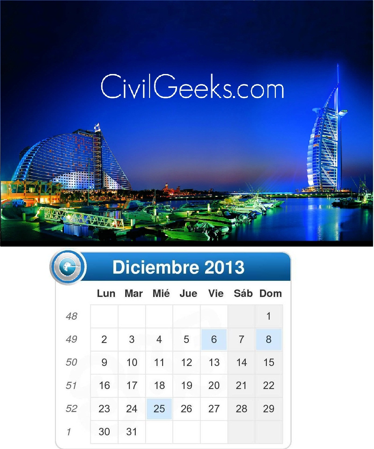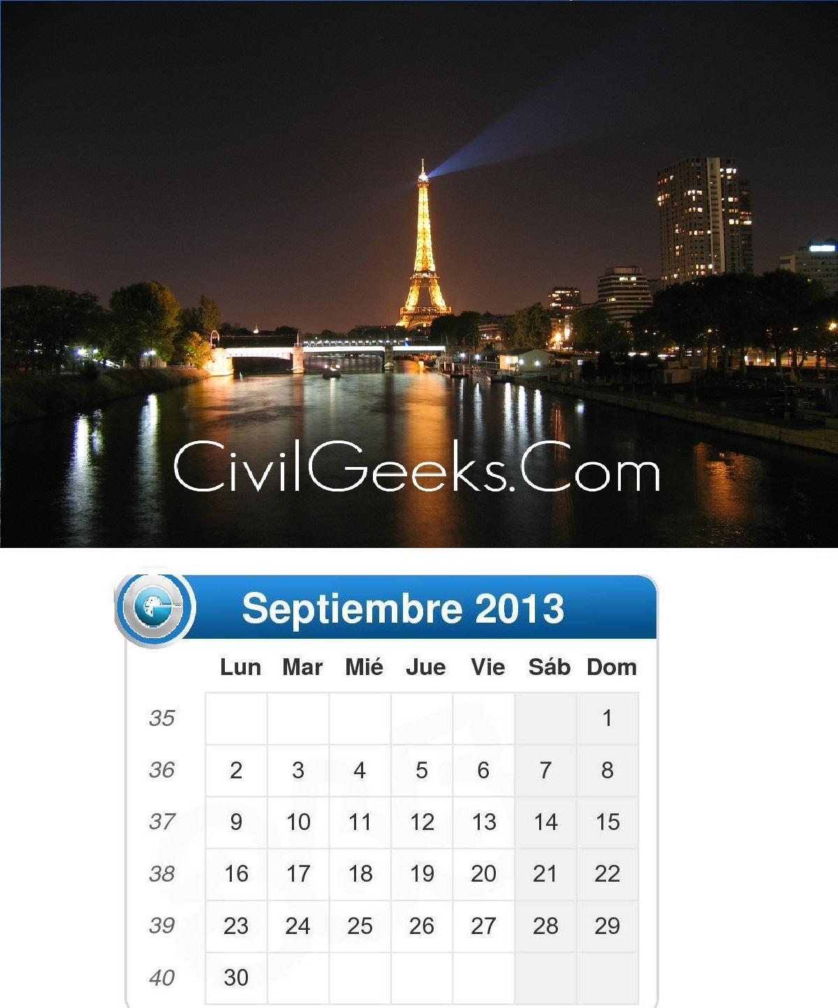CALENDARIO OFICIAL 2013 DE LA PAGINA WEB CivilGeeks.Com