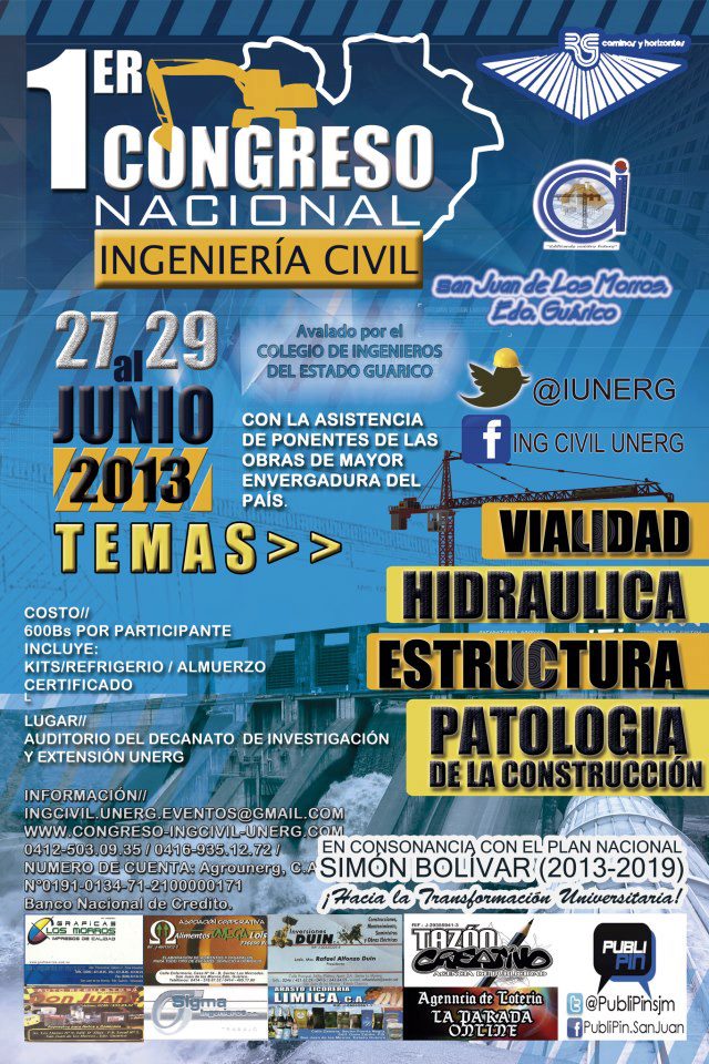El congreso cuenta con el aval del Colegio de Ingenieros del estado Guárico y con la participación de destacados ponentes, entre ellos los ingenieros: Snell Díaz, Humberto Bolognini, Ildemaro Morales y Taidé Zobel, quienes han trabajado en obras como: Ciudad Tavacare, Yacambú Quibor y el III Puente sobre el Río Orinoco, Tramo: Cabruta – Caicara. Los temas a discutir son: Motivación, Vialidad, Hidráulica, Estructura y Patología de la Construcción. Todos enmarcados en la búsqueda de soluciones y proyectos factibles para cumplir con los planes y estrategias trazados en el Plan Nacional Simón Bolívar (2013 – 2019).
