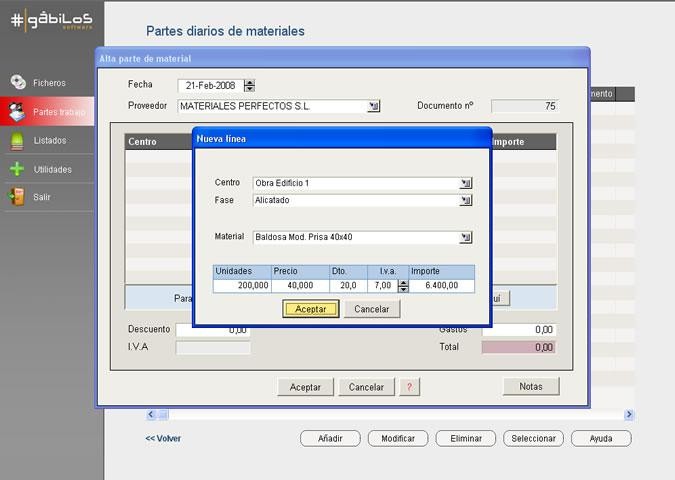 Podremos abrir ficha de cada trabajo que nos encarguen e ir asignando al mismo las horas invertidas por operario y los materiales adjudicados a esa obra.