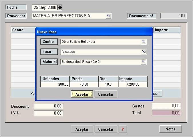 Cada trabajo lo daremos de alta indicando sus distintas fases, si las hubiere, e iremos adjudicándole, por ejemplo, la compra de materiales necesarios a medida que se hagan. El programa nos calculará el precio a facturar con el margen comercial que le hayamos indicado.