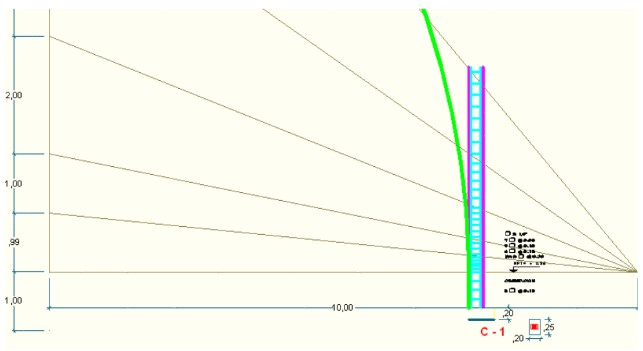 El tercer grafico distribuye los estribos en relación a las líneas que atraviesan a escala el dibujo de la columna.