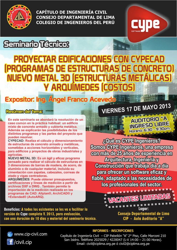 En este seminario se abordará la resolución de un caso común en la práctica habitual: un edificio mixto de concreto armado y cubierta metálica. Ademas se explicarán las posibilidades de los distintos programas y las partes del proyecto que pueden resolver: