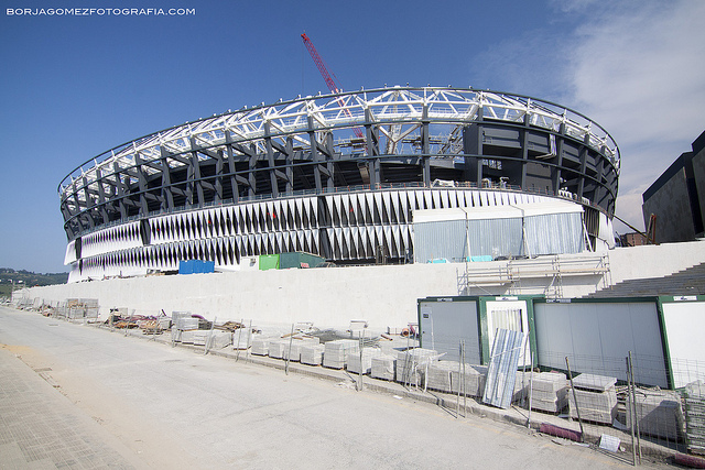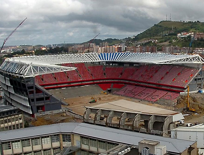 La primera piedra se colocó el 26 de mayo de 2010 y, el inicio de las obras, comenzó oficialmente el 25 de junio del mismo año. Se estima que el estadio estará totalmente construido en marzo de 2015, aunque el Athletic Club comenzará a jugar en él a partir de la temporada 2013/14, a falta de la construcción de uno de los fondos.
