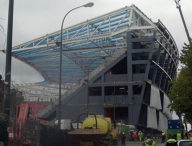 Lo triste de este proyecto es que no se ha previsto conservar el magnífico arco metálico que aguanta la cubierta de la tribuna norte, obra de uno de los mejores ingenieros que ha tenido España, Carlos Fernández Casado. Aunque hay algunas alternativas propuestas, sospecho que se va a perder un elemento tan histórico como ese arco…