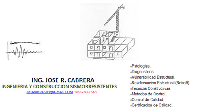 El Ing. José Rafael Cabrera nos invita a la Conferencia Internacional de Ingeniería Sismorresistente que se celebrara los días 24 y 25 del presente mes de Octubre a la cual vendrán 12 invitados de Estados Unidos y otros países y en la cual tendrán participación otros tantos dominicanos entre los cuales quien el Ing. José Rafael Cabrera agotara una disertación de 1 hora con el tema: