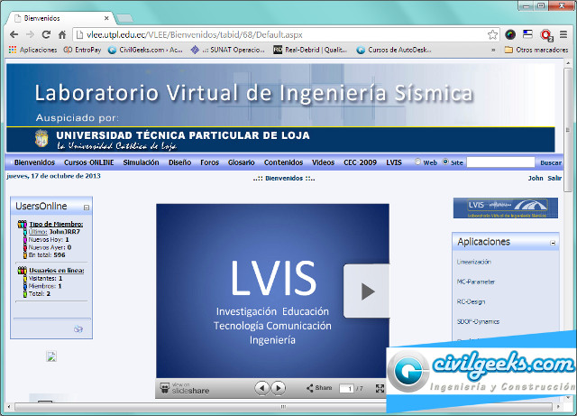 El Laboratorio Virtual de Ingeniería Sísmica (LVIS) ha sido desarrollado como una herramienta para la educación e investigación en Ingeniería Sísmica. Esta herramienta, interactiva, de acceso libre, permite a realizar “Experimentos Virtuales” sin el uso directo de software especializado en simulación estructural. Además, el LVIS permite la comunicación, colaboración, discusión e intercambio de información entre sus usuarios.