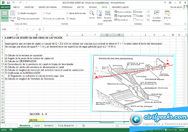 Les dejo hoja de calculo en excel para el diseño de diseño de una BOCATOMA.