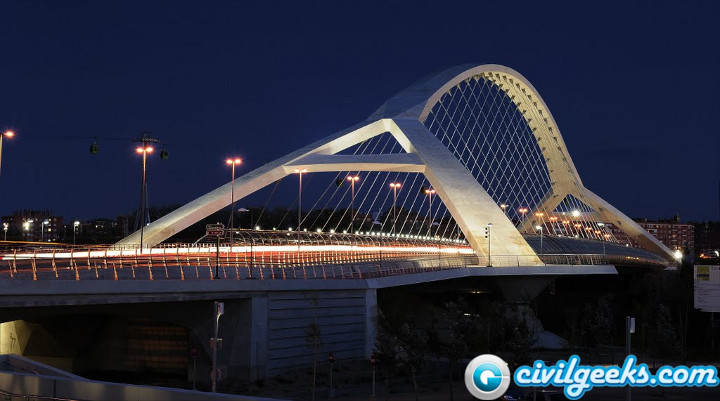 El Puente del Tercer Milenio, puente arco atirantado por un tablero inferior (bow-string), construido casi íntegramente en hormigón blanco de alta resistencia y con un ancho tipo de tablero de 43 m y 216 m de luz principal (con lo que pasa a ser el puente de hormigón de mayor luz construido hasta la fecha con esta tipología estructural), se ha convertido en una pieza básica en la trama urbana de Zaragoza por múltiples razones:
