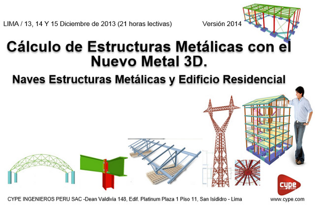 Al finalizar el curso los alumnos habrán aprendido los procesos de introducción de datos, análisis de resultados y tratamiento de la información para obtener la documentación gráfica y escrita para el proyecto de las estructuras calculadas. Habrán adquirido las habilidades necesarias para el manejo de los programas Generador de Pórticos y Nuevo Metal3D de CYPE Ingenieros.