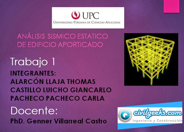 ANÁLISIS SÍSMICO ESTÁTICO DE EDIFICIO APORTICADO ,vídeo que podrán bajar las Presentaciones y Vídeos de Exposiciones , desarrollados por los alumnos d el curso Ingeniería Sismo-Resistente, dictado por el Dr. Genner Villarreal Castro en la Carrera de Ingeniería Civil de la Universidad Peruana de Ciencias Aplicadas, correspondiente al ciclo 2013-02.