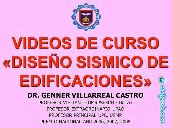 VIDEOS DE CURSO «DISEÑO SISMICO DE EDIFICACIONES» [Ph.D. Genner Villarreal]