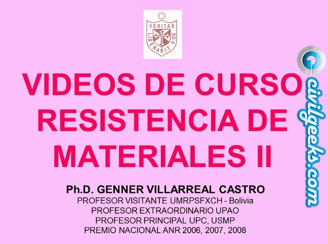 Podrán bajar los Videos del Curso «RESISTENCIA DE MATERIALES II», dictado por el Ph.D. Genner Villarreal Castro en la Escuela de Ingeniería Civil de la Universidad de San Martín de Porres. Cortesía: Gerardo Molina Gómez. Para ello, hacer click en los siguientes enlaces:
