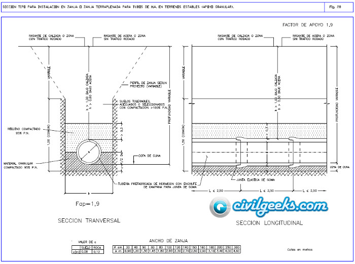 - FIG 28 Instalación en zanja o zanja terraplenada Fa=1,9.(amra12.dwg).