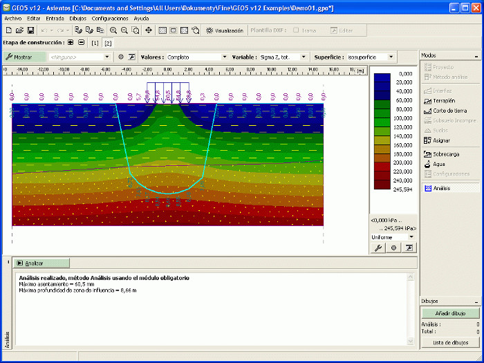 - Considera diferentes teorías de análisis de asientos (Janbu, Buisman, terreno blando, usando los índices y coeficientes de compresión, asentamientos secundarios según Lade)