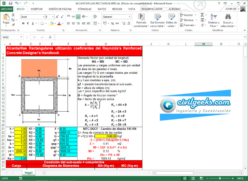Para los estudiantes de Ingeniería Civil presentamos esta Hoja excel para diseño de alcantarillas rectangulares. esperando que les sea de utilidad en su aprendizaje continuo.