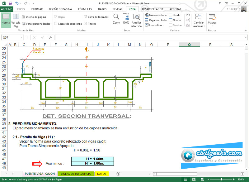 Hoja excel para diseño de puentes tipo viga-cajon.