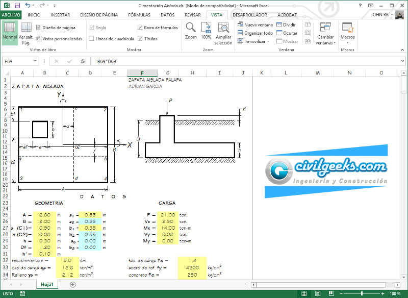 Excelente hoja excel para diseñar zapatas aisladas.