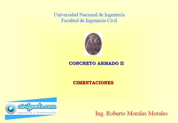Compartimos diapositivas del curso de concreto II, en específico sobre el tema de cimentaciones aisladas dictada por el Q.E.P.D Ing. Roberto Morales Morales en la Universidad Nacional de Ingeniería – Facultad de Ingeniería Civil.