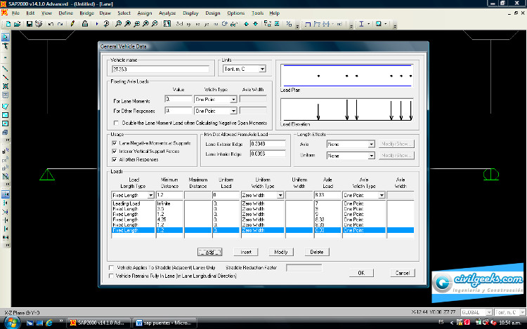 El manual de lineas de influencia en puentes contiene los procedimiento de comprobación de Momento Máximo y línea de Influencia por Cortante o Momento. Se desea Calcular el Momento máximo de una viga simplemente apoyada de una Longitud de 28 m, estos resultados los corroboramos con el programa SAP2000.