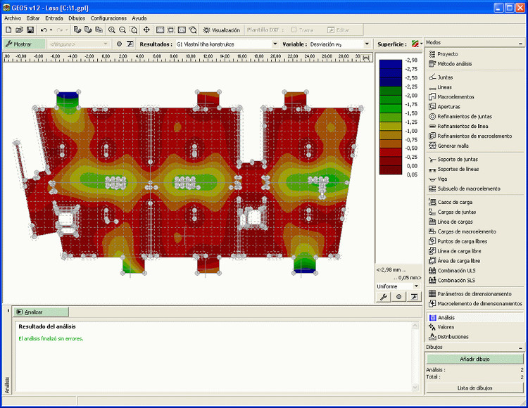 El programa realiza el análisis de losas y placas de cimentación sobre terrenos de cualquier forma utilizando el método de Elementos Finitos