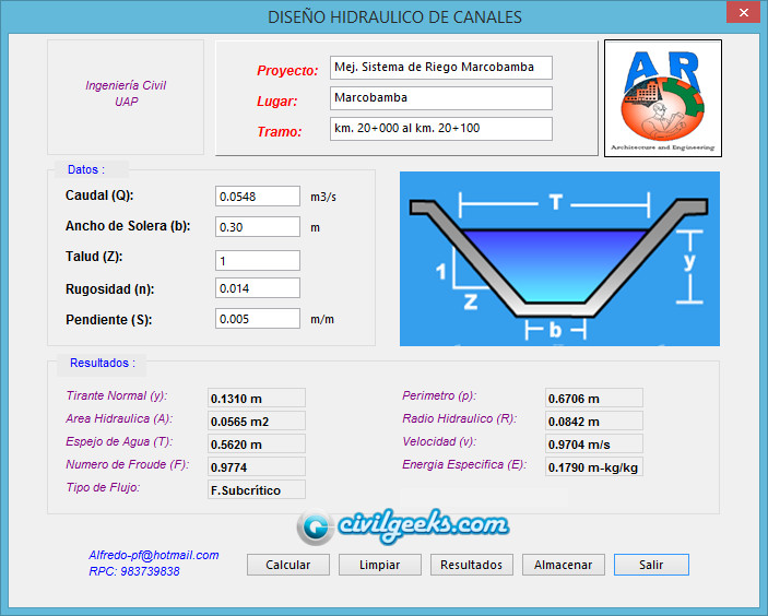 buenas noches necesito la ayuda de poder obtener hojas de cálculos hidráulica canales