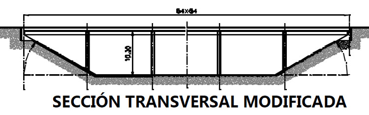 La estrategia para lograr ahorros fue elemental: en lugar de muros de contención verticales (que resultaban de 50 cm de espesor, con refuerzo vertical de varilla de 1‖ cada 10 cm y refuerzo horizontal de 5/8‖ cada 20 cm) sugerimos un talud de 30º aproximadamente (de solo 10 cm. de espesor, parrilla de 3/8‖ cada 30 cm). El volumen de líquido desalojado por el talud se compensó aumentando un poco la profundidad del tanque, como se muestra enseguida.