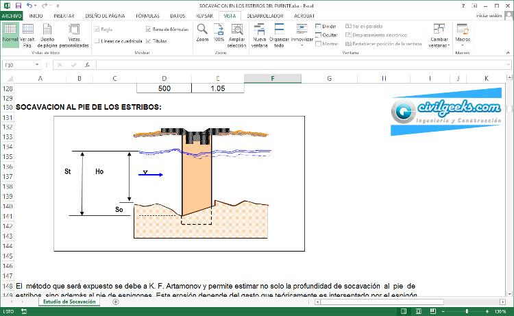 Hoja excel para determinar la socavación en los estribos de un puente.