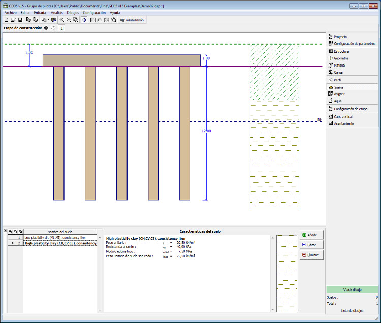 - Post-cálculo automático de resortes a lo largo del pilote desde propiedades del suelo.