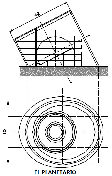 En su interior hay gradas circulares de donde se observa la cúpula del planetario. Bajo estas gradas se localizan oficinas, restaurante, baños e intendencia, y, a los lados, salas de exhibición.