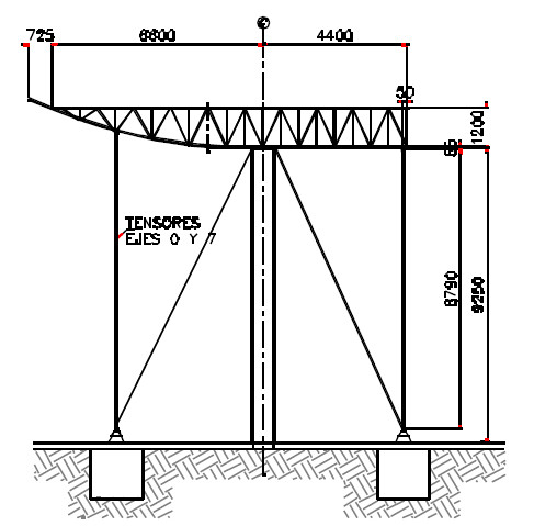 Encontró él que en cierta página se había calculado un momento en la armadura principal que se transcribía a los renglones siguientes con un valor mucho menor. Además, por estar en la parte acuchillada de la sección del ala, el peralte real de la armadura era menor que el máximo, dando lugar a que tres miembros principales resultaban muy escasos. Todo esto lo arreglamos de inmediato, en teoría, corrigiendo los renglones correspondientes y los planos, cosas que concierta facilidad podían repararse en la obra