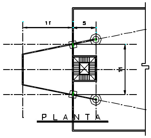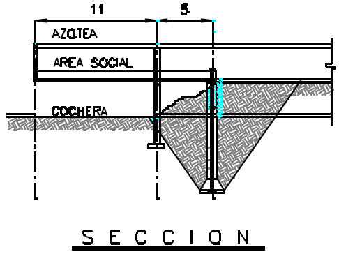 Resulto una casa espectacular, caracterizada por un voladizo trapezoidal de 11 x 11 m, sobresaliendo del muro frontal, como se muestra en la figura siguiente.