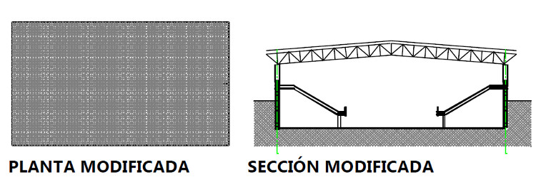 - Sustituir la estructura horizontal original por otra de dos aguas. Con esto se eliminaba los polines y columnitas adicionales usados solo para dar pendientes.