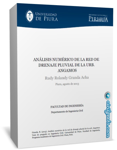 - El capítulo IV hace referencia al marco teoría empleado para el diseño de la red de drenaje en mención; cabe señalar que este fue realizado por el IHHS (“Instituto de Hidráulica, Hidrología e Ingeniería Sanitaria”) de la UDEP. El capítulo V menciona las consideraciones que se han tenido en cuenta para el análisis de esta red a través del SWMM.