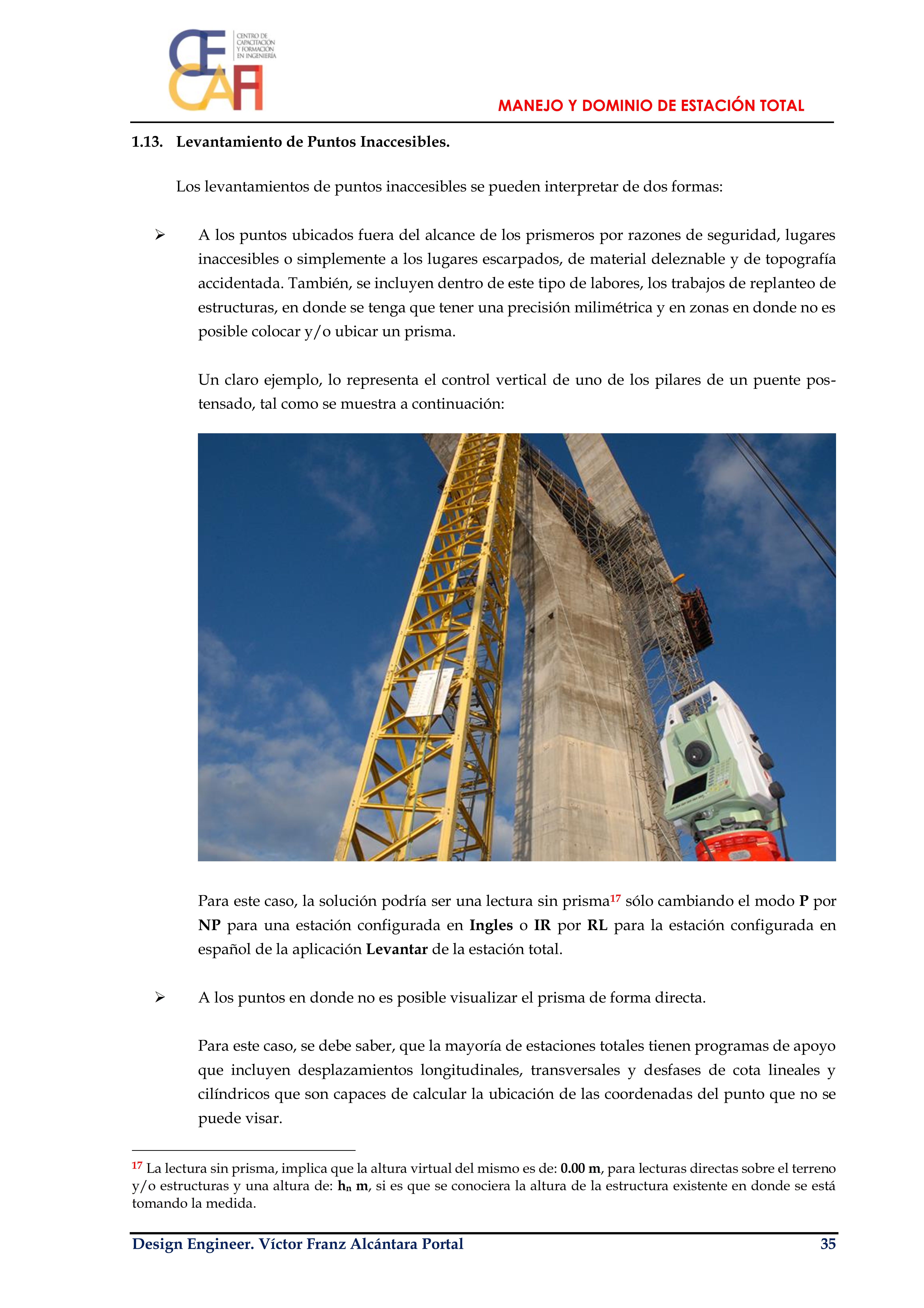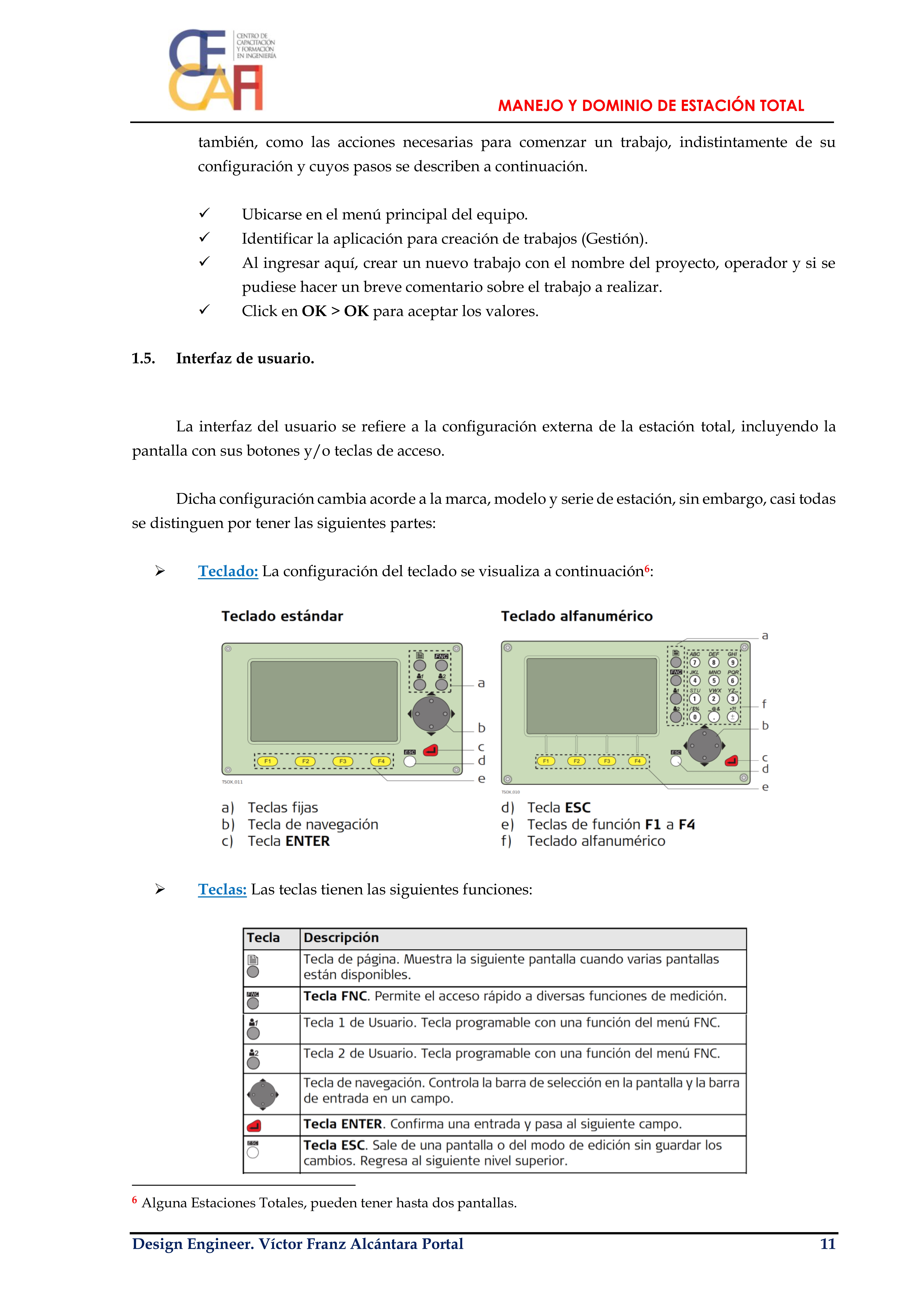 Por que el proceso de mejora continua nunca acaba y siempre hay que seguir actualizando los pequeños aportes que venimos realizando a la gran comunidad de Ingeniería en habla Hispana, hoy les paso a compartir el manual del Curso – Taller: Manejo y Dominio de Estación Total, utilizado para su enseñanza en el: Centro de Centro de Capacitación y Formación en Ingeniería – CECAFI EIRL, en la Ciudad de Cajamarca – Perú.