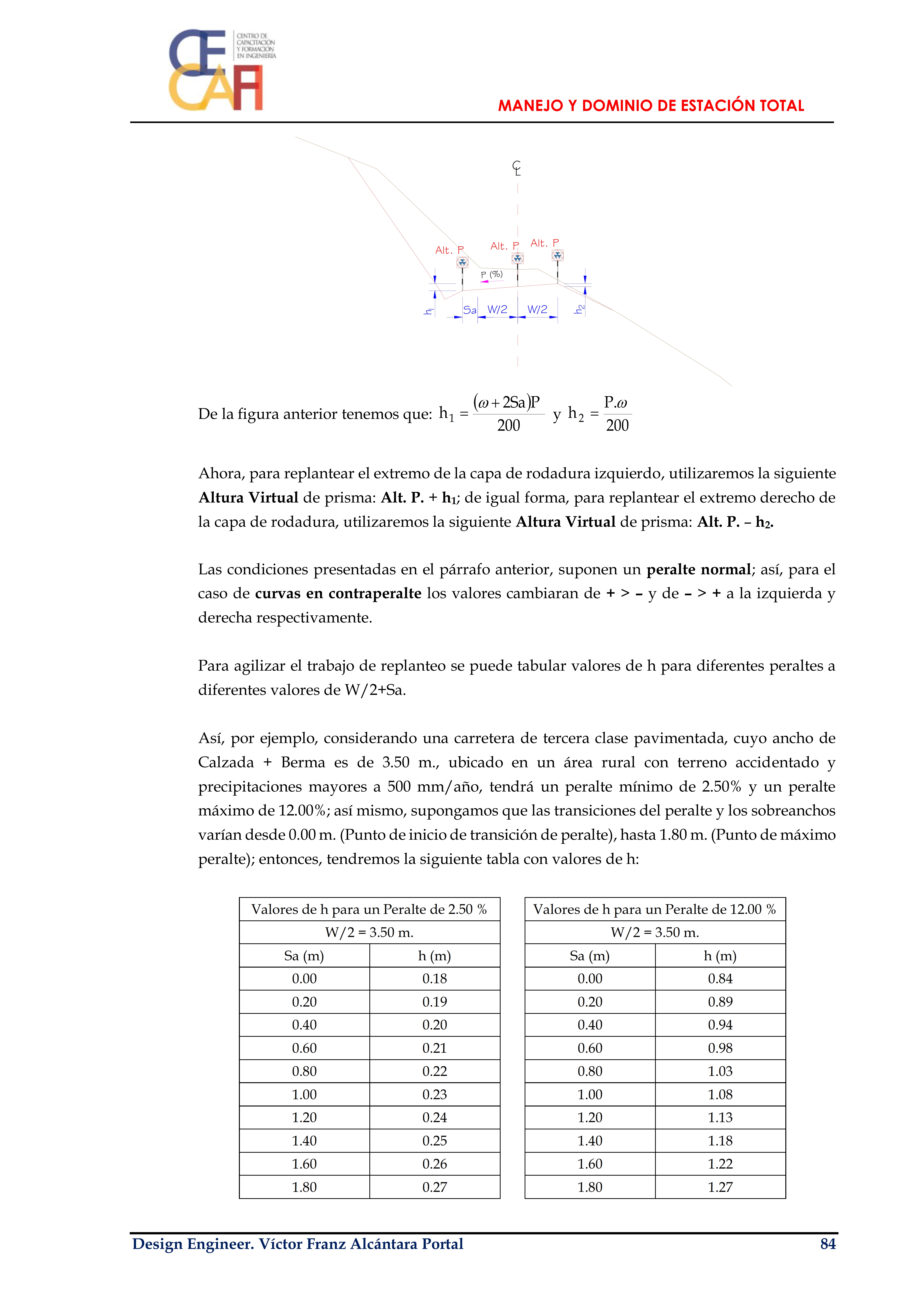4.5. Replanteo de una Carretera (Incluido Bombeos, Peraltes, Sobreanchos y Taludes)