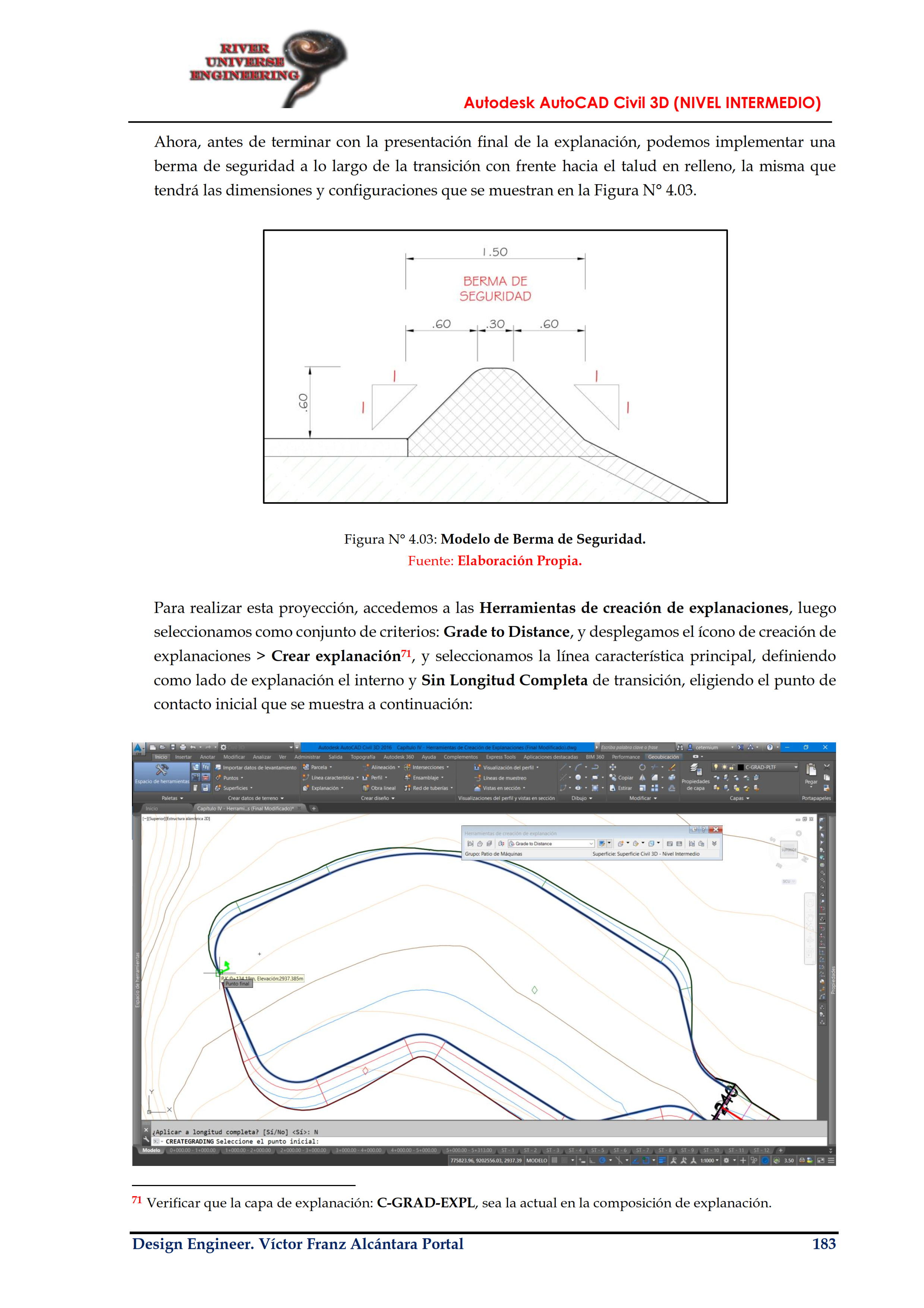 El presente capítulo pretende reforzar los conocimientos básicos y la forma clásica de obtener explanaciones y volúmenes, ya sea para obras lineales y/o para la proyección y ejecución de todo tipo de explanaciones, siendo necesaria su total comprensión, para poder ejecutar explanaciones más complejas (Pilas de Lixiviación, Rellenos Sanitarios, Botaderos, Presas, Tajos de Operaciones Mineras, etc.) que requieren de modelamientos especiales, los mismos que serán tratados en los siguientes Capítulos de Autodesk AutoCAD Civil 3D.