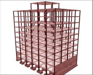 • Dimensionado 3D del modelo de la nave incluyendo la entreplanta, los pilares hastiales y las vigas de contraviento.