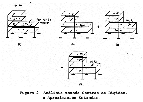 La Figura 2 (página 7) ilustra la aplicación de fuerzas laterales y momentos torsores en los CR para ambos análisis.