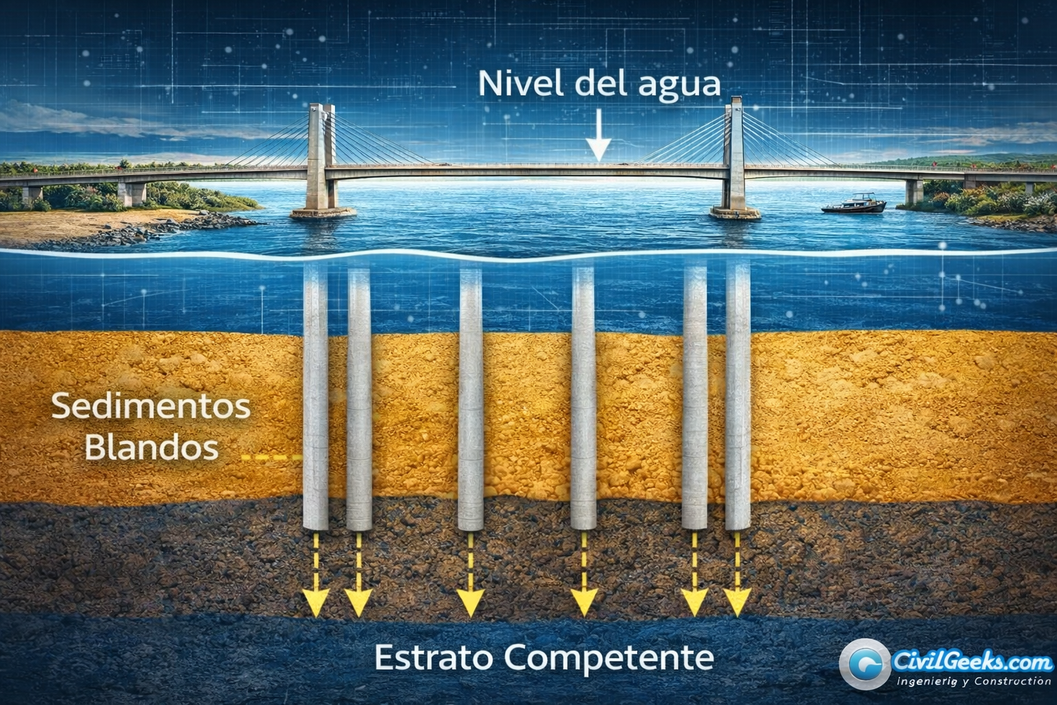 El Lago de Maracaibo presenta suelos lacustres compuestos por sedimentos blandos y estratos de baja capacidad portante en superficie. Por tanto, fue necesario recurrir a: