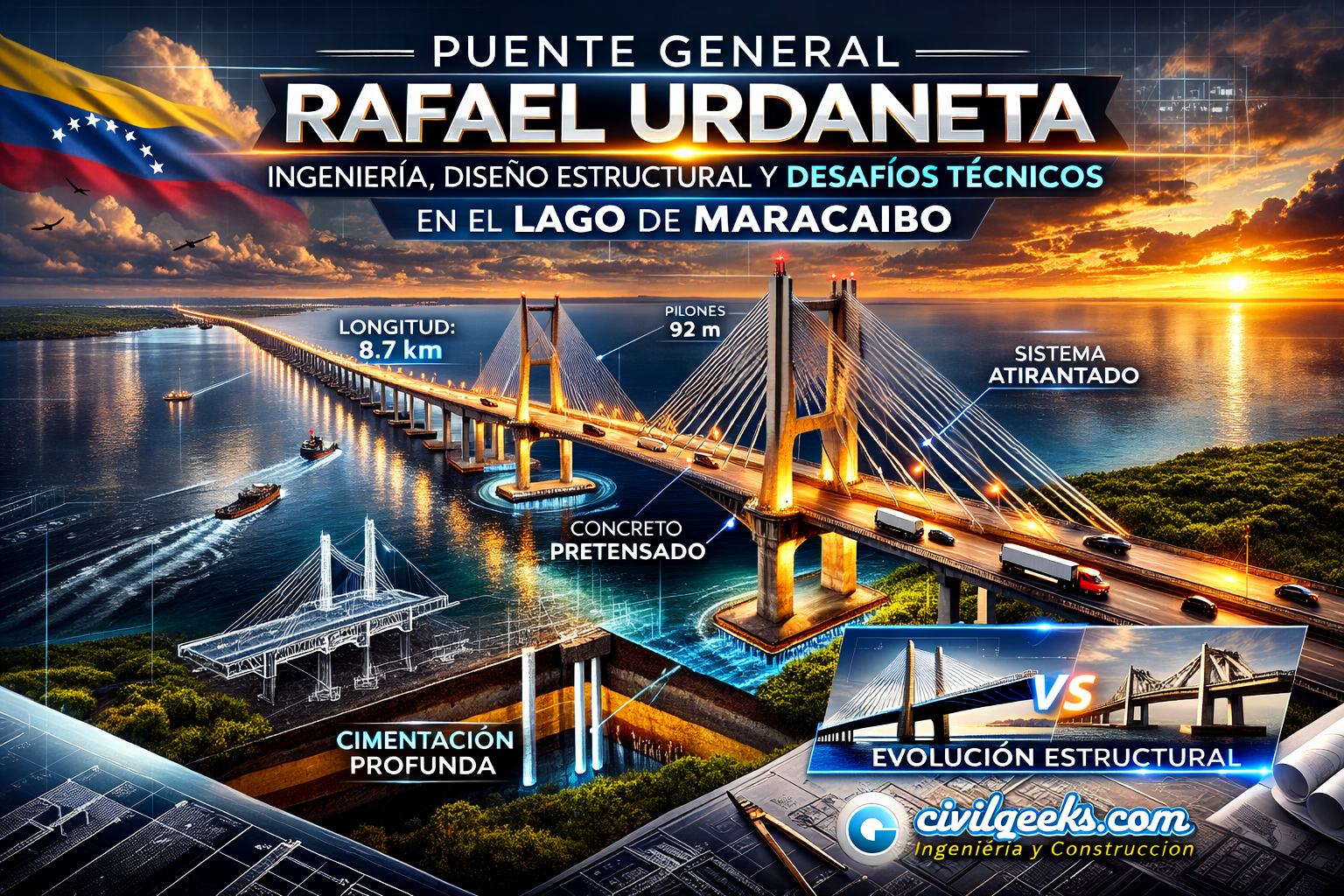 El Puente General Rafael Urdaneta representa una obra emblemática que combina innovación estructural, desafíos geotécnicos significativos y lecciones derivadas de eventos accidentales.